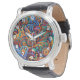 サイケデリックろうけつ染めギターアートカラフルレトロ音楽 腕時計