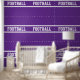 このモダンスポーティなデザインは、白いスポーツ文字を強調した白い白い横向きのレースの浮きストライプ上が紫色の背景に王室の浮かぶ。このデザインの色と文字は可能であパーソナライズされたる。