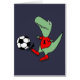 おもしろいでファンキーな緑のtレックスの恐竜はこのかわいいおもしろいのユニークな元の芸術のデザインのサッカーかfutbolを遊んでいます。