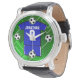 サッカーパーソナライズされたジャージーブルーと白 腕時計