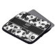 このサッカーをテーマにしたラップトップスリーブは、さまざまなサイズのサッカーボールを組み合わせカスタマイズて、コーチの名前、チームの名前、スポーツのシーズン/年のランダムな3次元の外観のパターンで配置して、katz _d_zynesによって
