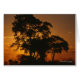サバンナの夕日の写真プリント、カード、ギフトは、ボツワナのアフリカサファリ中に35mmカメラで撮影された、アフリカのサバンナに立つシルエットの木々の後ろに広がる見事な赤と金の夕日の美しい写真を特徴としています。 この見事な夕日の写真は、自然愛好家、夕日愛好家、そして写真愛好家への完璧なギフトです。 今日、自然の美しさを共有しましょう!