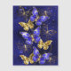青い質感の背景に豪華なサファイアと金ゴールドジュエリー蝶の組成物。