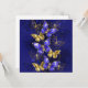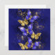青い質感の背景に豪華なサファイアと金ゴールドジュエリー蝶の組成物。