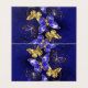 青い質感の背景に豪華なサファイアと金ゴールドジュエリー蝶の組成物。