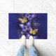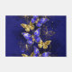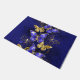 青い質感の背景に豪華なサファイアと金ゴールドジュエリー蝶の組成物。