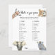 キリン、ヒョウ、ゾウ、ゼブラの水色のイラストレーションを特徴とするサファリジャングルの赤ちゃんシャワー招待。「ちょっと乱暴な奴が来るぞ」 一致する項目が使用可能。