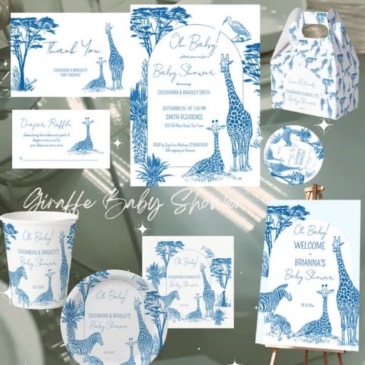 サファリブルートイレキリン赤ちゃんシャワー 招待状