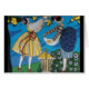夏鮮やかの木からリンゴを集める美しい女性と上品なフランスのアールデコ高ファッションイラストレーション,白黒,黄色,アクアブルー,緑の色カッコいいとモダンデザイン芸術的.