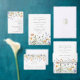 このデザインは繊細な水色の野草の列を備えている。夏の庭園の結婚式。
