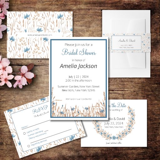 極上のワイルドフラワー結婚デザインを搭載したミニマルな招待カードで、お客様の夏の雰囲気を招待状。エレガンスで自然の本質と祝あなたの特別な日を捉えるのに最適。ブルーワイルドフラワーとドライグラスを備えシンプルて、このは、美しい招待カードは、時間に来るあなたのゲストを確実に!