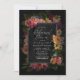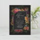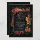 サンゴとバラピンクから黄金の黄色までの明るく暖かい色の緑豊かなフローラの配置と活気のある黒曜日背景を組み合わせ与え、このエレガントなウェディングスイートのピースには暗く不機嫌な雰囲気を持つ。この結婚リハーサルのディナーの招待は白縁どい枠に囲まれた黒いラのまわりにベルの豊富な花々を特徴とする。提供されたテンプレートを使用してイベント詳細を追加する。ID829を検索して、コレクション全体を確認。