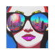 ポップ・アートの術女かわいらし性美しい女性抽象芸術サングラスの女性反射都市厚いサングラスピンクの口紅青いピンクと黒