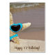 半生の誕生日にサングラスとビキニをビーチに着たヒトデの半分。任意の年齢に使用できる。