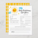 太陽お洒落光テーマ赤ちゃんシャワーベビー予測とアドバイスカードは、太陽の雲と星の水彩アートを特徴とする。この文字は編集可能。シャワー中に遊完璧なゲームと必ず記念素晴らし品になる!カード頼の客は、ベビーの外観を予測する。