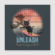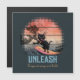 サンセットWAVEライディングCAT磁気カード:波に黒い猫のサーフィンで、太陽はピンクとオレンジの色合いで沈み、超現実的なシーンを作お洒落り出す。