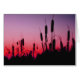 深いの赤と紫の夕焼けの空に向かってシリュートやガツノミがシルエットした。