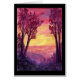 サンセットトレイル – オレンジと紫の鮮やかな水色の夕日。Mロジャースの絵画水彩画から。