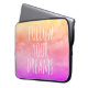 この「夢」の後を追感動的引用文ラップトップスリーブで、一日にインスピレーションを加えます。引用文タイポグラフィの白は、夕焼けの黄橙、ピンク、紫の雲の背景にある。