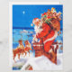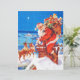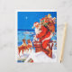 クリスマスの前の夜、サンタクロースとトナカイが雪の上の屋根に上がる。