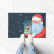素朴街の中にメイスンの瓶を持っているスタイルのサンタ。青い背景に雪が降る。