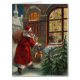 サンタと彼の贈り物のバッグは、クリスマスお祝いの真ん中に到着した。明るい窓には、美しい木と幸せな家族がきらめく映し出されている。このアンティークのクリスマスハガキは頻繁に見られず、鮮やかな色と懐かしい古いファッションのイメージで楽しむことができる。このフェスティバルイラストレーションで休日メッセージを配信。カード、招待状、はがき、装飾や休日の贈り物に最適。