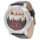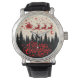 サンタズスリーのメリークリスマスフォレストのシーンアート 腕時計
