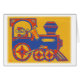 サンタが生きてる!サンタトレインクリスマスカードやその他のホリデーギフトユニークは、黄色、オレンジ色の背景に青と赤のトレインでサンタのケラー・カードの作成を特徴とし、サンタ・ライフという言葉で旗を掲げている。家飾、友人のメールボックス、またはヴィンテージリノリウム手切りブロックプリントデザインでツリーの下のボックスを埋める。サンタが生きてる!我々のオリジナルサンタトレインで仲間や家族に証明しろ!