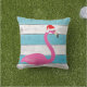 赤いサンタストライプのハットを着た大きなピンクのフラミンゴと共に飾、トロピカルなロケーションに最適なクリスマスアクセサリーに仕上げた可愛いターコイズと白い屋外クッション。この枕は、PrettyFancyPillowsの屋外ピローコレクションにある他の屋外クッションと完璧にコーディネートする。
