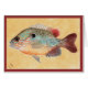 Long Eared Sunfish – 長い耳を持つサンフィッシュ、Lepomis megalotis、オレンジ色と青い繁殖色の詳細な側面。イラストレーションは、パーチメント色の背景を持つアンティークスタイルにある。M Rogersの水彩画から。
