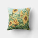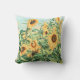 野に咲く巨大なヒマワリ。夏のかわいらし自然黄色のティール(緑がかった色)アート写真装飾屋外装飾用クッション。美しいエレガントフローラ装飾。田舎の素朴な花デザイン。Image copyright Marg Seregelyi Photography.