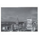この白黒の写真は夜のサンフランシスコのスカイラインを写している。象徴的なアメリカ横断ピラミッドは、他の照明された超高層ビルの中で目立つ。街の光が水を反射し、きらめく効果を生む。空は雲で埋め尽くされ、シーンに奥行きが加わる。全体的な雰囲気は穏やかで都市である。