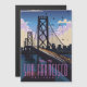 旅に出ろ!サンフランシスコ素晴らしいアートデコスタイルで夕暮れ時のスカイラインの旅行ポスター。
