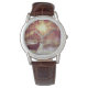 サンライズゴールデンアワーの霧の多い森の中の雄シカ 腕時計