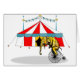 サーカステント付き自転車に乗っ赤と白ているサーカス象