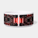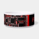 赤カッコいいと黒のコンピュータ回路基板のクローズアップと赤のペットの名前を特徴とする書デザイン。カスタマイズ可能なデザインを備えたペットボウルは、自分の文字、写真、アイディアでパーソナライズする。写真とデジタル技術を用いてオリジナルを作成した画像。