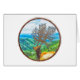円形フレーム絵画内の風景とエル縁どク。この巨大なエルクは木々を〔雄ジカの〕枝角として育てた。彼は背の高い立ち、丘や水の体の森を眺めている。アートワークCopyright© 2017 Kimberly J Tilley.