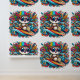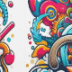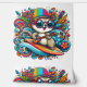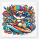 明るい色のサーフボードに映クールし出される漫画のオッターが登場。カワウソはレインボーバケットハットとストライプのオーバーサイズのピンクサングラスを身に着けている。茶色のウクレレにも染み付いている。青い波が渦巻く背景とサイケデリック、花や離れ抽象芸術のデザインがピンクやブルーやグリーンやオレンジやイエローなどの色で描かれてい鮮やかる。全体のスタイルはよくはしゃぐエネルギーお洒落で満ちている。