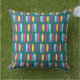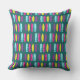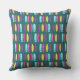 サーフボードカラフルパターン(の模様が)ある装飾用クッション。暗いティール(緑がかった色)の背景に明るい色のサーフボードのライン。プロフェッショナル素晴らしサーファーから趣味でサーフィンを楽しみたい人への贈り物背景の色を濃いティール(緑がかった色)から好みに合ったものに変えることができる。