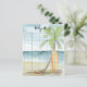 ベビーを乗せ!赤ちゃんシャワーの招待 – 夏の赤ちゃんシャワーに最適。ビーチテーマ。水の色のデザインは、サーフボード、パームの木と夏の帽子と海とビーチのシーンを持っている。
