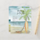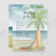ベビーを乗せ!赤ちゃんシャワーの招待 – 夏の赤ちゃんシャワーに最適。ビーチテーマ。水の色のデザインは、サーフボード、パームの木と夏の帽子と海とビーチのシーンを持っている。