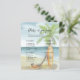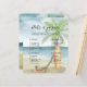 ベビーを乗せ!赤ちゃんシャワーの招待 – 夏の赤ちゃんシャワーに最適。ビーチテーマ。水の色のデザインは、サーフボード、パームの木と夏の帽子と海とビーチのシーンを持っている。