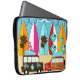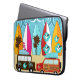 サーフボードはつまらないサーフィンのヒッピーのバンを浜に引き上げます ラップトップスリーブ