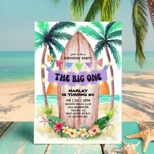 サーフ&シー | The Big One 1ビーチ誕生日パーティー 招待状