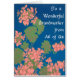 深いの青い背景と白いレタリングにサーモンピンクのジェラニウムを付けた祖母のためのかわいらしと、汎用性の高いグリーティングカードあなたは、母の日や祖父母の日、または彼女の誕生日のために、または'元気を得る'カードとして、あなたの祖母に送信することができる。Judy Adamsonのスクリーン印刷デザインから、適切に内部メッセージをカスタマイズできる。