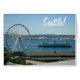 晴れた日のシアトルの水辺地帯は美しい事です! この写真では、Bremertonフェリーは左のシアトルの素晴らしい車輪に直面するエリオット湾の水を渡って着いています。 青空はピュージェットサウンドの青海原に反映されます。 前景ではシアトルのアクアリウムの屋根はあり、背景で私達は水を渡る西のシアトルの丘の港そして緑ビットの建物を見ることができます。 この打撃は水辺地帯の上のパイクプレースマーケットから、取られました。 写真の版権ゲイルStorrs 2014年。