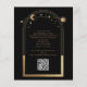 シチュラルブラック金ゴールドQRコードキンセアニラ招待状はエレガント、黒い背景に金ゴールドの太陽、月、星を持つ。Insideは、お客様のカスタムQuinceaeneraの招待状の情報。逆に、キンセニェラのウェブサイトやQRコードなどの追加情報を追加する。文字・ボックスで文字を編集してパーソナライズEvco Studio www.zazzle.com/store/evcostudioによるユーザー向け設計