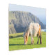シェットランドポニーの牧草地の高い崖の近く メタルプリント