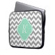 シェブロンの灰色及び白いストライプでカスタムなモノグラム ラップトップスリーブ