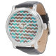 シェブロンカウブラウンおよびティール(緑がかった色)プリント 腕時計